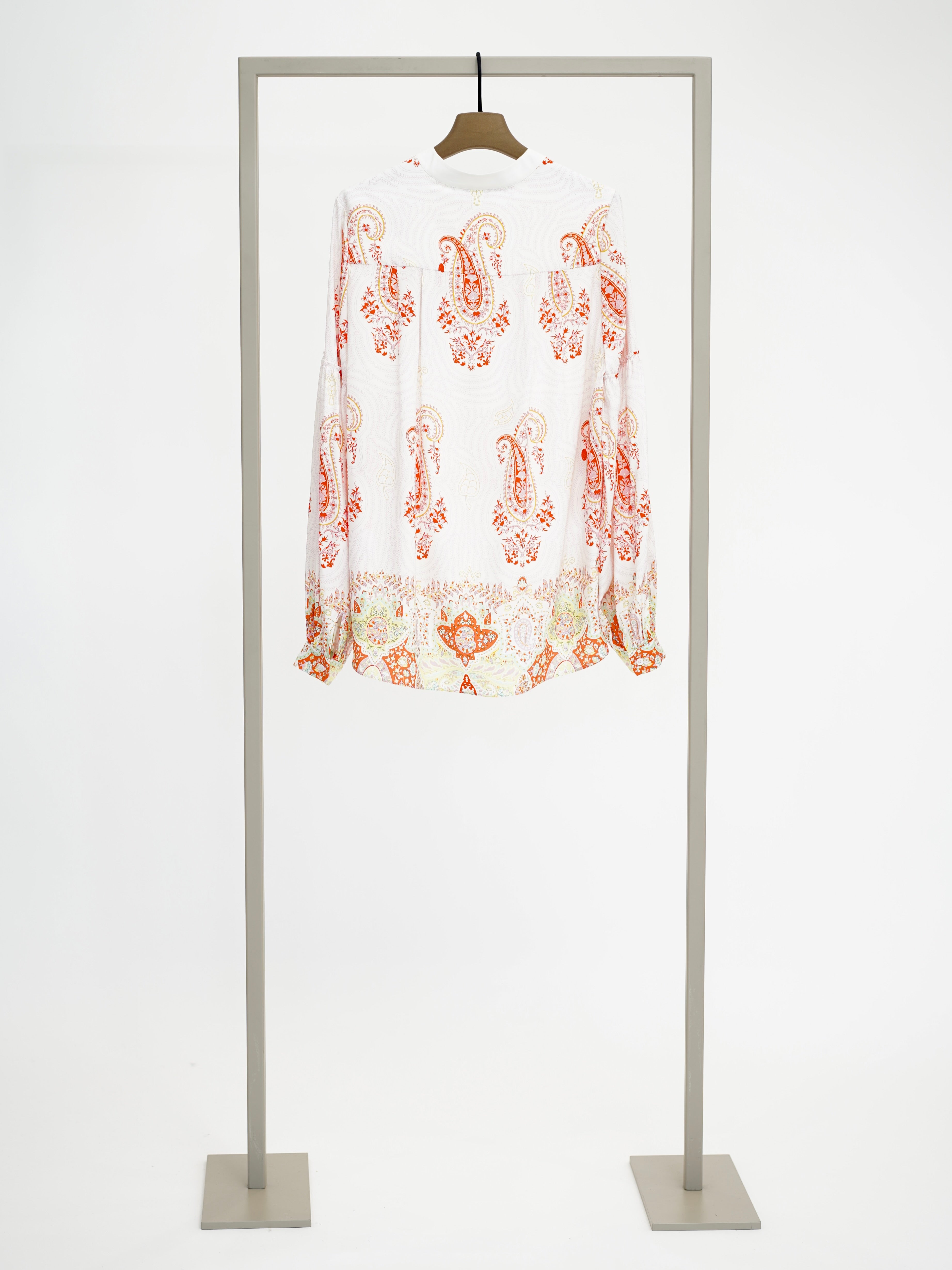 Seidenbluse mit Tunika-Ausschnitt und Ornament-Print