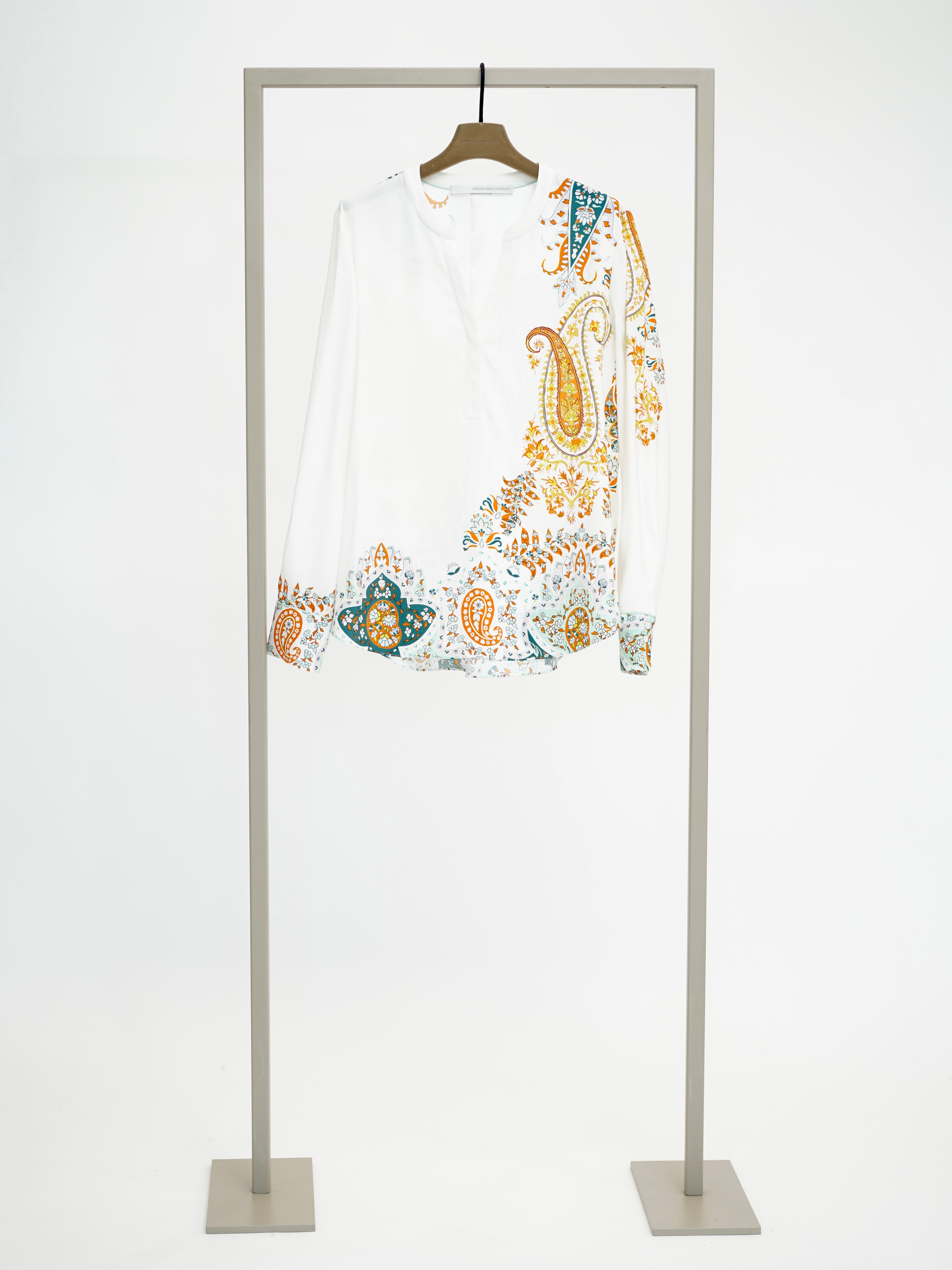 Blouse with tunic neckline and floral paisley print