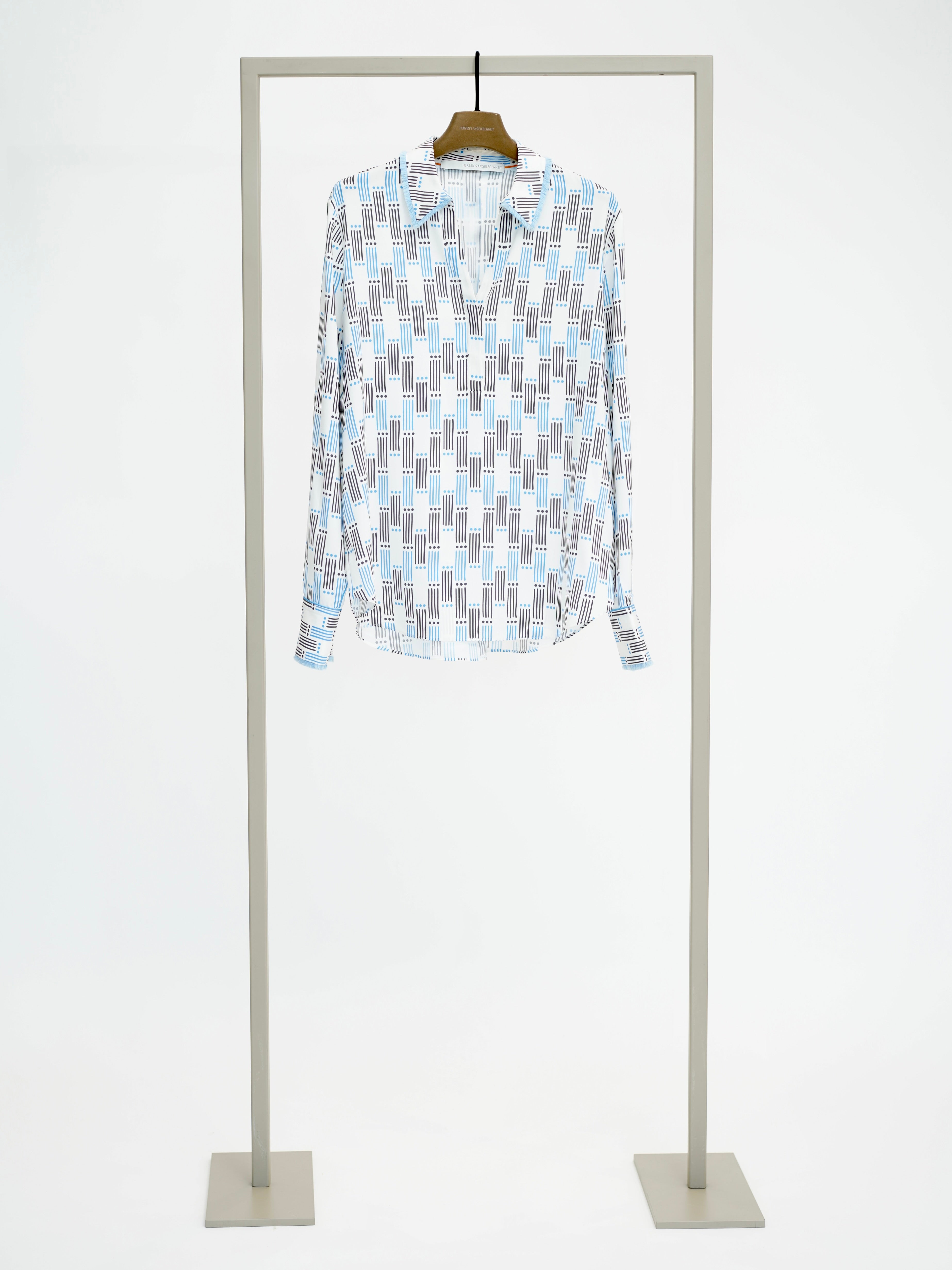 Bluse mit angerauten Kragen und Allover-Print aus Seide