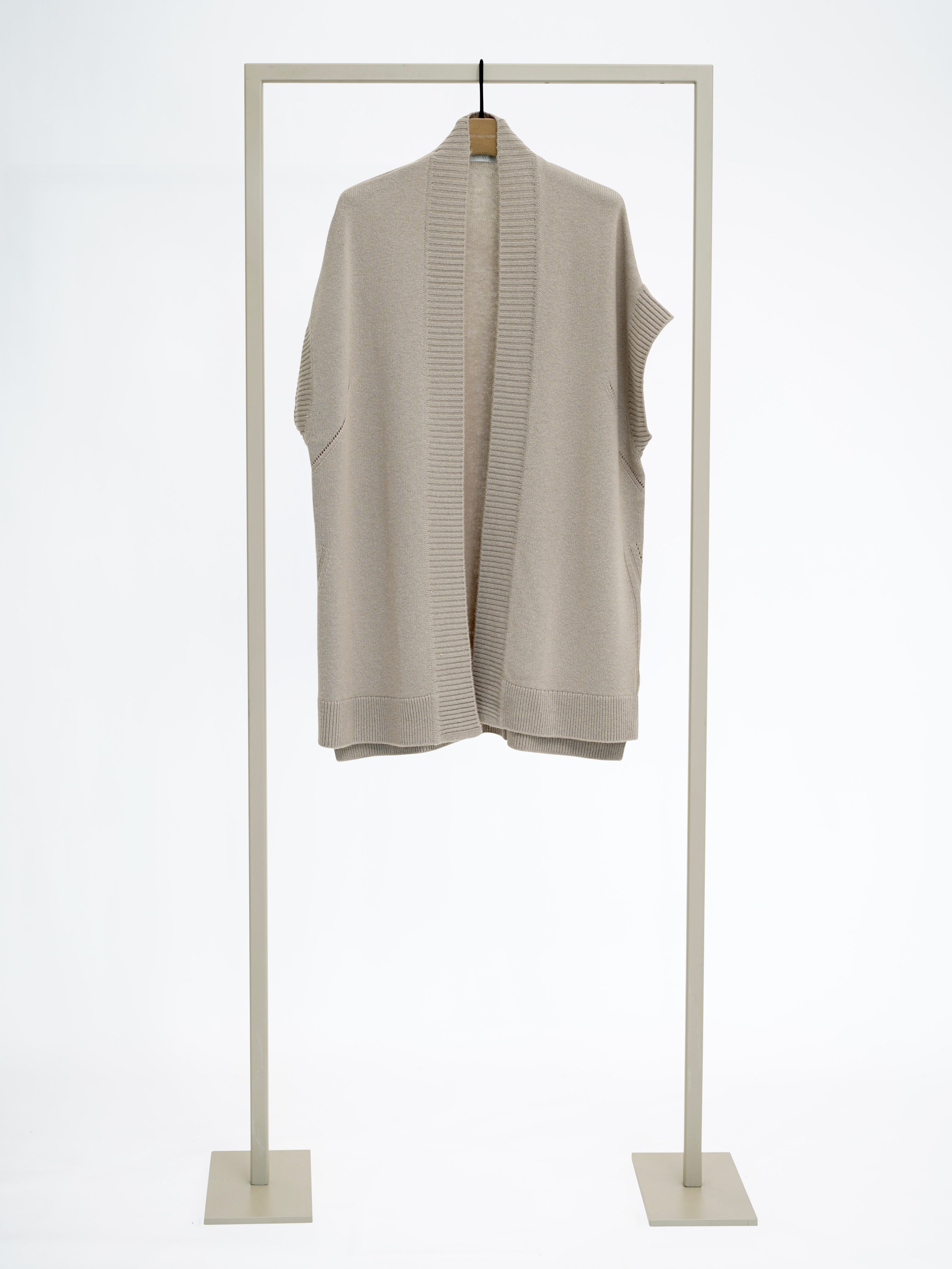 Short-sleeved cardigan with an open silhouette, made from wool and cashmere